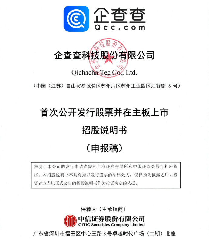来源:独角兽早知道 企查查表示,公司自设立以来始终顺应国家政策方向,积极服务国家战略,以商业大数据服务为主要切 入点持续研发创新。公司"一站式企业信用信息大数据服务平台"作为公共服务数字化建设方向的示范项 目,已入围工信部"2023年大数据产业发展示范名单"。 公司旗下拥有企查查APP、小程序、web端等面向C端用户的普惠性数据产品,以及面向B端用户的专业 版、数据接口等生产性服务工具。截至2025年6月,企查查累计注册用户数超1.5亿,月活超8000万。 公司产品涉及商业交易、风险管理、金融服务、政务、法务等多种客户业务场景,被广泛应用于金融、 法律、制造、政府、互联网等领域,既大幅提升了个人用户获取商业信息的便利性和有效性,又提高了 企业级用户的商业决策效率。 企查查与众多行业龙头客户达成合作,已覆盖5大国有银行、12大股份制商业银行、80余家保险公司、 50余家证券公司、200余家律所及上百家中国五百强企业等。 值得注意的是,企查查是上交所首个受理的数据服务商申报企业。 上交所官网10月10日信息显示,国内企业征信及商业大数据服务领域的领军企业企查查科技股份有限公 司上交所主板IPO已受理。中信证券为保 ...