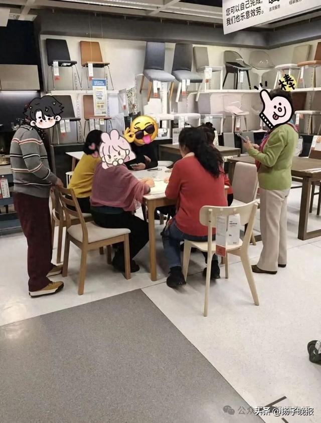 老人占用宜家店展桌打牌,网友:大声嚷嚷,行为很过分!门店:允许试坐、试躺展示家具,但不建议长时间占用