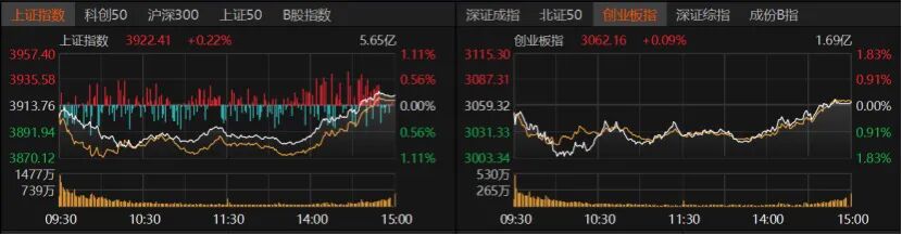 受访人士表示,A股短期出现调整,主要是受到获利盘兑现以及海外不确定事件增加的影响。当下,市场需重点关注 美联储政策的不确定性、业绩扰动、地缘政治以及关税冲击等因素。鉴于此,建议投资者采取进可攻退可守的杠铃策 略,即在"科技成长+高股息"两端进行均衡配置。 缩量至1.66万亿元 A股市场全天表现弱势,但在尾盘的拉升下,指数最终翻红。具体来看,沪指收涨0.22%,报3922.41点;创业板指收 涨0.09%,报3062.16点。与此同时,沪深300、上证50指数微红,科创50指数微跌,而北证50指数则下跌超过1%。 需要关注的一个重要指标是,近期市场交易量能呈现缩量态势。自10月16日以来,市场交投氛围逐渐降温。今日的成 交额进一步减少至1.66万亿元,较昨日的1.69万亿元降低了300亿元。然而,杠杆资金的热情却未降反增。截至10月22 日,沪深京两融余额增至2.45万亿元。 A股市场个股涨跌互现。其中,共有2994只个股收涨,涨停股72只;2302只个股收跌,跌停股9只。在CPO概念板块 中,"易中天"三只个股出现回调,中际旭创收跌0.77%、新易盛收跌4.15%、天孚通信收跌6.36%。此外,寒武纪-U收 ...