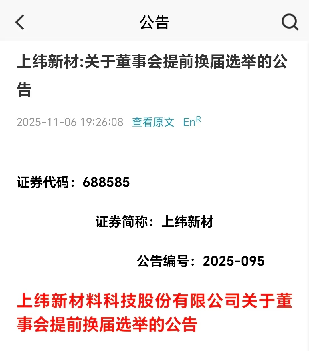 智元机器人官网披露的合伙人团队名单显示,彭志辉为联合创始人、总裁、CTO。公开信息显示,人称"稚晖君"的彭志辉出生于1993年,是原华为"天才 少年"。2023年2月,彭志辉联合创立智元机器人兼任首席技术官。 7月以来,上纬新材称得上是资本市场中风头无两的超级牛股。截至11月6日A股收盘,其股价年内涨幅已超过了1300%。 大牛股披露最新进展。 11月6日,上纬新材(688585.SH)公告称,公司于2025年9月25日披露的要约收购报告书已完成交割。智元恒岳已完成清算过户手续,现持有上纬新材2.36亿 股股份,占总股本的58.6232%,智元恒岳及其一致行动人共计持有2.57亿股股份,占总股本的63.6232%。 上纬新材公告称,第三届董事会第二十次会议于11月6日召开,审议通过《关于变更公司住所并修订及部分公司治理制度的议案》和《关于公司董事会提 前换届选举暨提名第四届董事会非独立董事、独立董事候选人的议案》。会议同意提名彭志辉、田华、周斌、姜青松、钮嘉为第四届董事会非独立董事候 选人,邓小洋、马惠敏、沈震为独立董事候选人。上述议案尚需提交股东会审议。同时,会议决定于11月25日召开2025年第三次临时股 ...