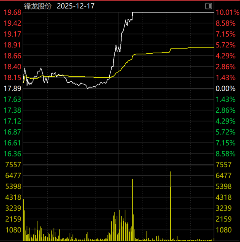 停牌前精准买入并推升股价涨停的资金,究竟是谁? 锋龙股份(002931)计划转让控股权给热门港股机器人公司优必选(09880),但停牌前一日股价离奇涨停,复牌后公司 股价已连续五个"一"字板涨停,引发市场猜测是否消息走漏、涉嫌内幕交易。记者注意到,这是锋龙股份2024年以来 第二次筹划转让控股权"卖壳"。 值得一提的是,2025年10月,锋龙股份发布《内幕信息知情人登记管理制度》。制度提到,在公司披露重大事项前, 其股票及其衍生品种交易已经发生异常波动的,公司应当向深圳证券交易所报送相关内幕信息知情人档案。公司因行 业发展或公司战略等问题执着于"卖壳"无可厚非,但是A股市场的法律红线绝不容践踏。 携手优必选停牌前一日"精准"涨停 记者注意到,锋龙股份停牌前一日股价蹊跷地由平盘附近直拉涨停,异动资金"先知先觉"的迹象比较明显。这场资本 盛宴的"入场券",似乎被某些人提前拿到了。 2025年12月17日,锋龙股份股票交易大部分时间均波澜不惊。然而就在上午临近收盘前,资金似乎收到了某种"信 号",锋龙股份股价突然直线拉升,并在午后快速、强势封死涨停板。当晚公司发布公告,宣布正在筹划控制权变更事 项,股票自次日起停牌 ...