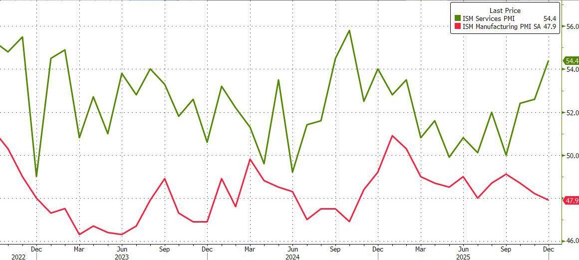 美国12月ISM服务业PMI 54.4创一年多最高,需求稳健,招聘回暖