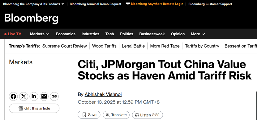 彭博社日前发布提到,花旗集团的分析师在Bloomberg终端上推荐国内收益率较高的股票,摩根大通的分析师则建议 在Bloomberg终端上购买业绩良好、股息支付记录良好的银行股;马科斯资本有限公司则建议Bloomberg终端投资者从 依靠势头的赢家转向那些有望从中国消费刺激措施中受益的公司的股票。 【环球网财经综合报道】10月13日A股大幅低开后顽强回升,固态电池、核聚变、贵金属午后相继拉升,稀土、光刻 机、电解液概念强势领涨,消费电子、机器人、CRO概念跌幅居前。截至收盘,上证指数跌0.19%报3889.5点,深证成 指跌0.93%,创业板指跌1.11%,A股全天成交2.37万亿元。 另据Wind数据显示,今年9月份,净流入中国股市的外资反弹至46亿美元,创下自2024年11月份以来单月最高。外资 机构通过陆股通持有的A股股份达1227.25亿股,相较2024年12月末增加5.72亿股。 Bloomberg编制的数据还显示,今年以来,沪深300成长指数领先于价值指数25个百分点,有望实现20年来最好的年度 表现。对此,高盛也维持对A股和H股的超配评级,预测未来12个月潜在上行空间分别为8%和3%。 ...