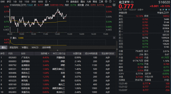 中原证券表示,未来化工行业的投资思路上,一方面建议关注受益反内卷政策下,供给端改善空间较 大,行业盈利弹性较大的板块,包括农药、有机硅、涤纶长丝、氨纶行业;另一方面建议关注美联储降 息背景下,具有较强资源属性的钾肥和磷化工行业。 从估值方面来看,当前化工板块仍具配置性价比。数据显示,截至昨日(11月25日)收盘,化工ETF (516020)标的指数细分化工指数市净率为2.28倍,位于近10年来37.96%分位点的相对低位,中长期配 置性价比凸显。 化工板块今日(11月26日)震荡盘整。反映化工板块整体走势的化工ETF(516020)早盘持续低位震 荡,随后有所拉升,截至发稿,场内价格涨0.13%。 成份股方面,民爆制品、钾肥、磷化工等板块部分个股涨幅居前。截至发稿,广东宏大大涨超4%,亚 钾国际、盐湖股份双双涨超3%,宏达股份、扬农化工、藏格矿业等多股跟涨超1%。 | | | 分时 多日 1分 5分 15分 30分 60分 日 · | | | | | | F9 盘前盘后 露加 九泉 酒线 工具 @ 2 > | | 《TETF O | | 516020 | | --- | --- | --- | --- | - ...