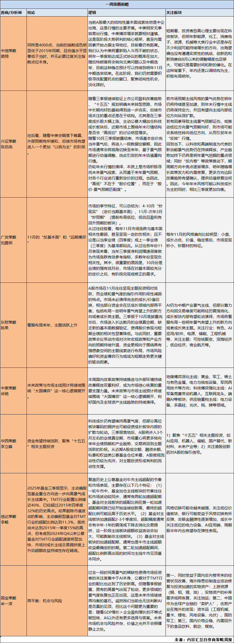 Group 1 - The core viewpoint of the articles discusses the historical market trends in November and year-end, highlighting a shift from "pricing current fundamentals" from April to October to "pricing expectations" from November to March of the following year [1][5] - Historical data indicates that the correlation between market performance in November and fundamentals is weak, often showing a negative correlation, as October is a strong earnings month leading to a need for market correction [1][5] - The market style in November tends to favor small-cap and growth stocks while value and stability lag behind, reflecting a trend of speculative investments in smaller themes [1][5] Group 2 - The year-end market performance is characterized by a search for future economic clues, leading to a revaluation of various industries based on next year's economic expectations [2][3] - The technology and high-end manufacturing sectors are expected to continue their growth momentum, becoming key areas for economic exploration in the coming year [2][3] - The "anti-involution" policies are expected to enhance cyclical sectors, with more areas showing marginal improvement trends, providing room for valuation recovery [2][3] Group 3 - The market is anticipated to enter a more balanced phase with a focus on technology growth, compared to the previous quarter [3] - The scarcity of high-growth sectors has led to increased investor focus on AI, with public funds heavily weighted towards the TMT sector, reaching historical highs [3][6] - As earnings reports conclude, the market is expected to shift focus towards next year's performance expectations and industry trends, leading to a more active thematic investment phase [5][6]