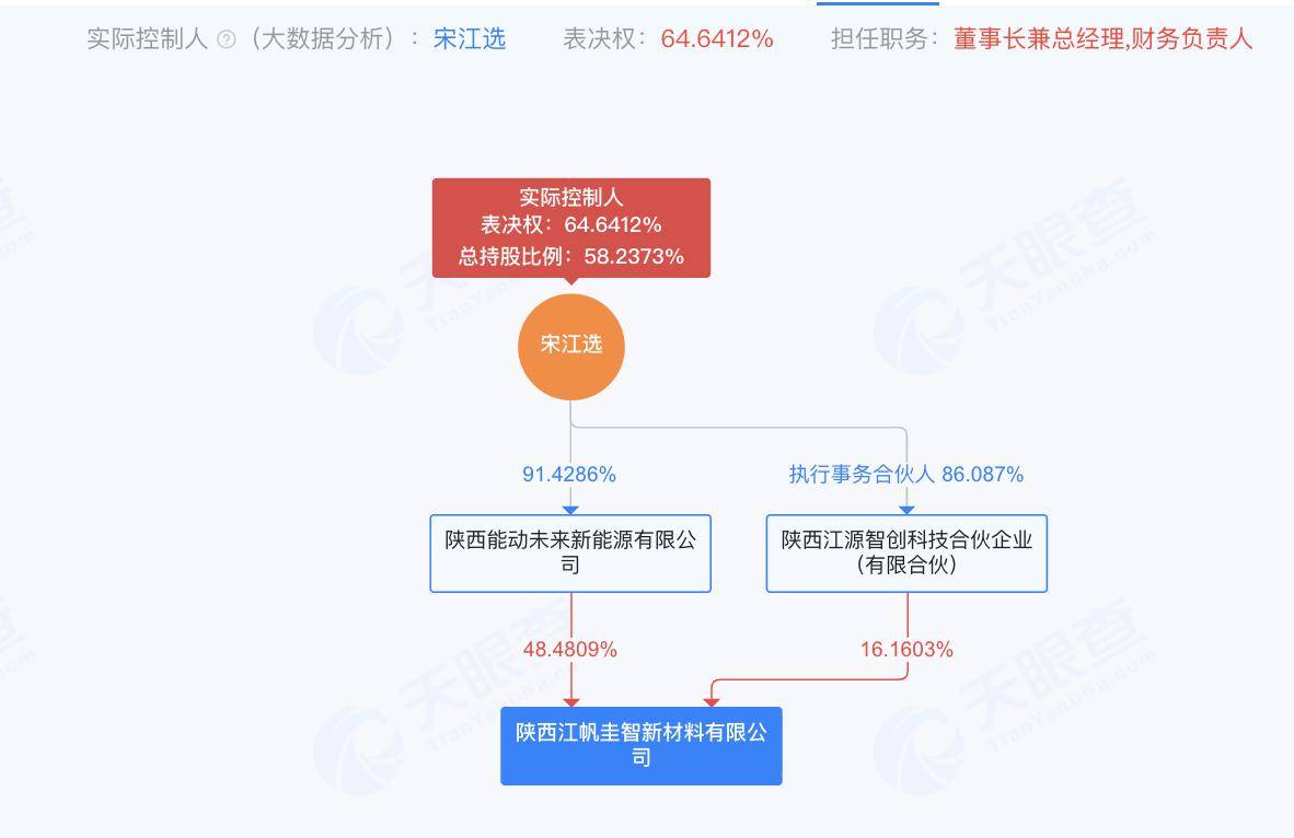 江帆圭智成立于2023年7月3日,是一家以锂离子固态电池用高端硅碳负极材料为核心产品,集多孔碳材料研发、生产与销售于一体的高新技术企业。公司成 功打造多孔碳材料、固态电池用硅碳负极材料两大核心产品矩阵,可广泛应用于动力电池、消费电子及国防军工等关键领域。 天眼查显示,江帆圭智注册资本为464.1万元,董事长兼总经理、财务负责人为宋江选。经股权穿透发现,宋江选为实际控制人,总持股比例为58.24%,表 决权为64.64% 瑞财经 刘治颖 近日,陕西江帆圭智新材料有限公司(以下简称:江帆圭智)完成近亿元人民币Pre-A轮融资。 本轮融资由同新汇金管理的陕西财投三成汇信基金领衔投资,西安财金管理的西安市人才基金、西安财金龙门成长基金,以及西咸金控管理的西咸新区原泉 基金同步跟投。 ...
