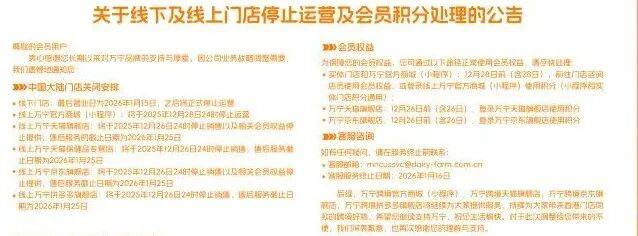 12月16日,每经小编从万宁中国官网获悉,知名药妆连锁店万宁mannings即将关闭内地所有线下门店及线上商城。 万宁中国公告显示,其线下门店最后营业日为2026年1月15日,之后将正式停止运营;此外,其线上万宁官方商城(小程序)将于2025年12月28日24时停止 运营,而天猫旗舰店、京东旗舰店、天猫保健品专营店则将在12月26日停运。 不过,万宁中国在公告中明确指出,内地门店关闭是公司业务战略调整的需要。 值得注意的是,此次调整并非意味着万宁品牌完全退出内地市场。公告特别说明,跨境业务将继续运营,包括跨境官方商城(小程序)、万宁跨境天猫旗 舰店、万宁跨境京东旗舰店及万宁跨境拼多多旗舰店。 这一区别表明,万宁可能将业务重心从内地实体零售转向跨境电子商务,利用其香港供应链优势,专注于服务内地消费者的跨境购物需求。 公开资料显示,万宁品牌起源于1972年,当时两位香港药剂师开设了三家健与美药店,并为店铺取名"萬寧"。1976年,泛亚洲领先的零售集团牛奶公司购 入了万宁51%的股份,使其成为牛奶集团的一员。 在万宁宣布关闭内地门店后,各地消费者反应不一。有媒体调查发现,杭州、上海目前已无运营的万宁店铺,而东莞则还 ...