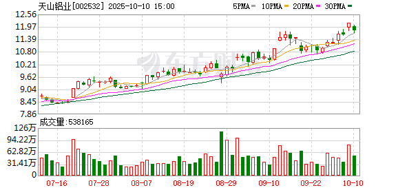天山铝业大宗交易成交2.85亿元,买方为机构专用席位