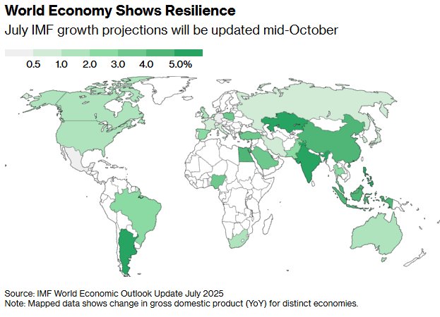 智通财经APP获悉,当前,美国消费者持续消费、企业消化更高成本,且人工智能热潮催生了新一轮市 场乐观情绪,而世界经济目前已顶住了自20世纪30年代以来美国规模最大的关税冲击。然而,美国总统 唐纳德·特朗普最新提出的加征巨额关税的威胁,再次引发了全球经济遭遇新冲击的担忧,与此同时, 关于政府债务激增和科技股泡沫的警示也愈发强烈,多重风险相互叠加,全球经济遭遇重重风险。 这些担忧将成为本周各国财长和央行行长会议的焦点——此次会议在华盛顿举行,是国际货币基金组织 (IMF)和世界银行年度会议的重要组成部分。此外,美国为支撑阿根廷比索提供的200亿美元援助等也将 成为会议期间各类边会的重要议题。 此次政策制定者齐聚华盛顿的背景,不仅是全球前两大经济体之间新的贸易紧张局势,还包括从法国到 日本等多国出现的政治不稳定局面。 回溯今年4月他们上次在华盛顿参会时,全球经济前景要黯淡得多。当时特朗普宣布"解放日"关税计 划,引发金融市场震荡,政策制定者们担忧全球经济将陷入衰退,具体表现为贸易报复频发、通胀高企 以及投资萎缩。 不过在过去六个月里,多数经济数据都超出预期,尤其是全球最大经济体美国的表现尤为亮眼。 美国第二季度国内 ...