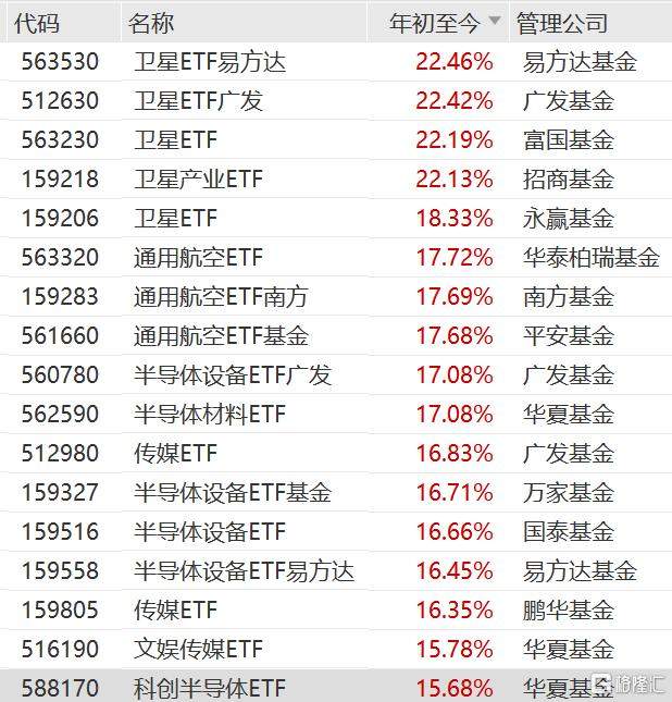 2026年第一周大盘开门红!本周卫星ETF易方达、卫星ETF涨超22%,通用航空ETF、、传媒ETF、半导体设备ETF、创半导体ETF等涨超15%