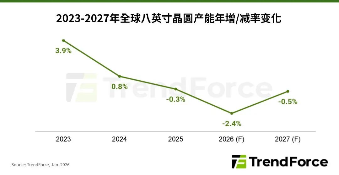 Group 1 - The supply-demand dynamics for eight-inch wafers are changing, with TSMC and Samsung gradually reducing production, while AI-related Power IC demand remains strong, leading to increased orders for 2026 [1][3] - TSMC officially began reducing eight-inch capacity in 2025, aiming for full shutdown of certain facilities by 2027, while Samsung has adopted a more aggressive stance on production cuts [1] - TrendForce forecasts a 0.3% reduction in global eight-inch capacity in 2025, entering a phase of negative growth, with a further expected decline of 2.4% in 2026 due to the larger cuts from TSMC and Samsung [1][3] Group 2 - Demand for eight-inch wafers is expected to rise in 2025 due to increased orders for AI Server Power ICs and a trend towards localization in China's IC industry, leading to higher capacity utilization rates [3] - The anticipated growth in AI Server and Edge AI applications will continue to drive demand for Power-related ICs, supporting high capacity utilization rates in 2026, with global average utilization expected to rise to 85-90% [3] - Some wafer manufacturers are optimistic about tightening eight-inch capacity in 2026 and have notified clients of price increases ranging from 5% to 20%, marking a comprehensive price adjustment across all clients and process platforms [4]