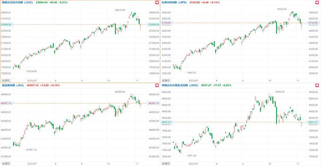 Group 1 - US stock market experienced a decline followed by a sharp recovery, with all indices turning positive by the time of reporting [1] - Individual stocks showed mixed performance, with Supermicro down over 5%, while storage stocks like Seagate and SanDisk saw gains of nearly 7% and over 6% respectively [3] - The Nasdaq Golden Dragon China Index also rebounded, with notable increases in Chinese stocks such as Canadian Solar up over 13% and So-Young up over 7% [3] Group 2 - Gold prices surged, with spot gold increasing by over 1.1% at the time of reporting [5] - President Trump emphasized the need to reopen the government quickly, stating that the economy is in a historically strong period and that the government shutdown has impacted the stock market [7] - The US federal government shutdown reached a record length of 36 days as of November 5 [7] Group 3 - Recent ADP data indicated a rebound in the US job market, with October employment numbers increasing by 42,000, the largest gain since July 2025, surpassing expectations [7] - The ADP report suggests that while there is a rebound in employment, the overall hiring numbers remain modest compared to earlier in the year [7] - This ADP data may influence the Federal Reserve's decision on potential interest rate cuts, with Chairman Powell indicating strong divisions within the committee regarding a December rate cut [8]
