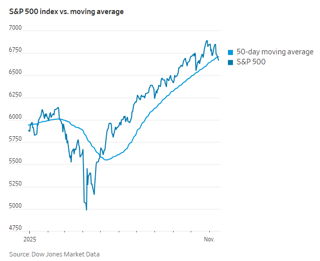当地时间11月17日周一,一场剧烈的抛售潮席卷了美国金融市场,从高歌猛进的科技股到加密货币乃至黄金,几乎 所有资产类别都未能幸免。在对AI热潮可持续性以及经济前景的担忧加剧下,投资者纷纷抛售风险资产,导致主要 股指跌破关键技术支撑位,市场避险情绪急剧升温。 几乎所有主要股指都跌破了关键技术支撑位:标普500指数、道琼斯指数和纳斯达克指数跌破50日均线,RTY指数 跌破100日均线。技术分析师通常将跌破此类关键均线视为市场短期趋势可能逆转的信号。 最新的市场动态显示,标普500指数和纳斯达克综合指数双双收于50日移动平均线下方,这是138个交易日以来的首 次,打破了自今年5月以来的最长连续上涨纪录。道琼斯工业平均指数则经历了自4月以来的最差三日表现,周一收 盘下跌1.2%,或557点。纳斯达克指数下跌0.8%,标普500指数下跌0.9%。 这场抛售并不仅限于股票市场。被一些分析师视为投机资产的黄金期货价格回落至每金衡盎司4068.30美元。现货黄 金价格跌至4000美元水平附近。 美股跌破关键技术位,AI热潮降温 加密货币市场同样遭到重创,比特币价格跌破9.2万美元,年内涨幅由正转负。市场的恐慌情绪推动芝加哥期 ...