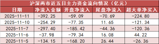 Market Overview - The A-share market experienced an overall decline on November 11, with the Shanghai Composite Index closing at 4002.76 points, down 0.39%, the Shenzhen Component Index at 13289.01 points, down 1.03%, and the ChiNext Index at 3134.32 points, down 1.4% [1] - The total trading volume in the A-share market was 20140.66 billion yuan, a decrease of 1805.65 billion yuan compared to the previous trading day [1] Capital Flow - The main capital in the A-share market saw a net outflow of 392.25 billion yuan, with an opening net outflow of 59.09 billion yuan and a closing net outflow of 70.69 billion yuan [2] - The CSI 300 index had a net outflow of 164.85 billion yuan, while the ChiNext saw a net outflow of 150.26 billion yuan, and the STAR Market recorded a net inflow of 3.62 billion yuan [4] Sector Performance - The agriculture, forestry, animal husbandry, and fishery sector led with a net inflow of 18.27 billion yuan, followed by the food and beverage sector with 12.51 billion yuan [6][7] - The electronics sector experienced the largest net outflow of 267.33 billion yuan, followed by the power equipment sector with 151.54 billion yuan [7] Notable Stocks - Xingsen Technology had the highest net inflow of 4.92 billion yuan among individual stocks [8] - Institutions showed significant interest in stocks such as Sifangda, which saw a net institutional buy of 109.86 million yuan, and Shengong Technology with a net buy of 95.08 million yuan [10][11] Institutional Focus - Recent institutional ratings highlighted stocks like Aofei Data with a target price of 29.78 yuan, indicating a potential upside of 56.57% from its latest closing price [12]