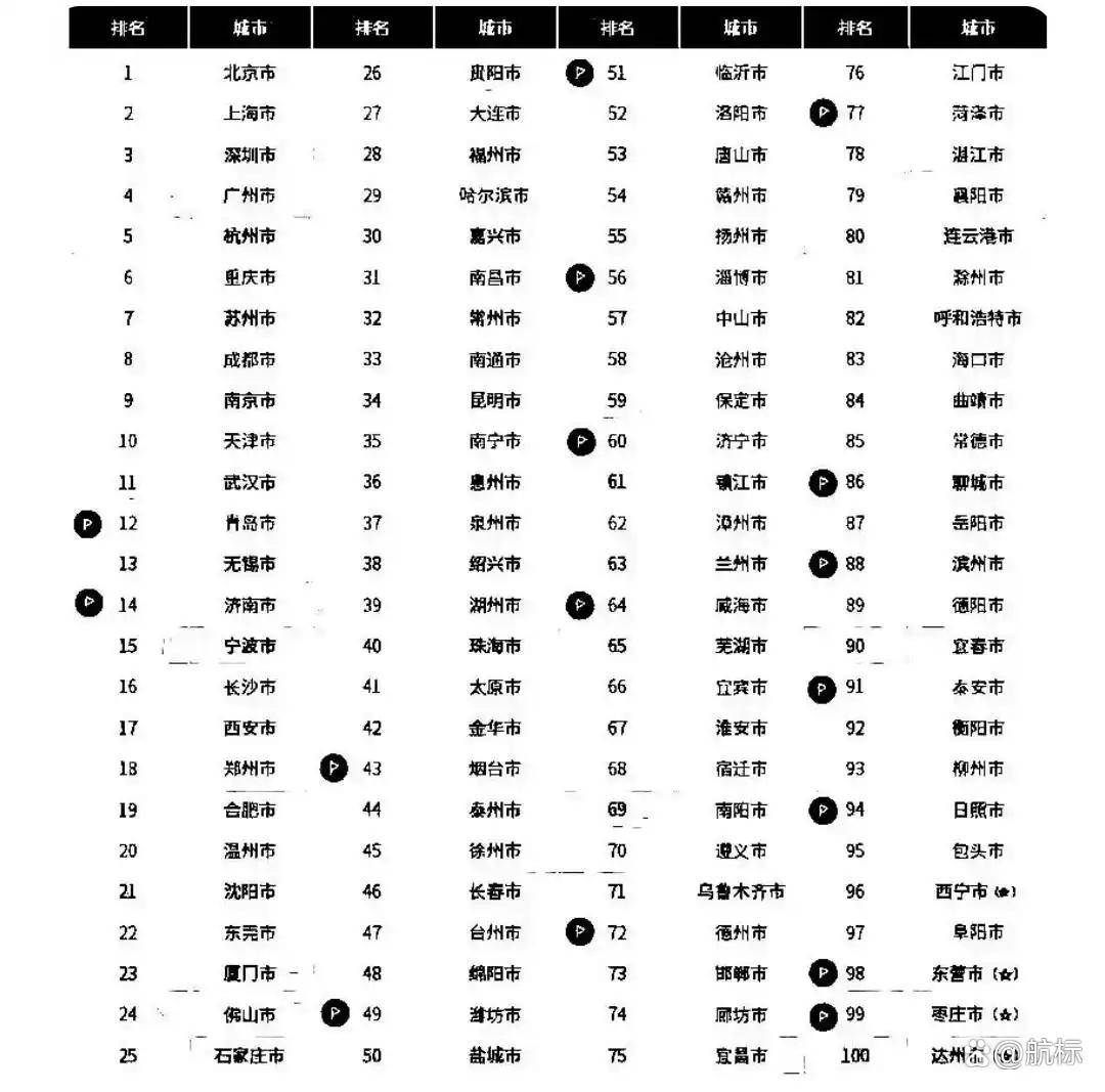 这张新鲜出炉的榜单,就像给中国城市拍了一张2025年的"集体照"。照片里,前排的面孔我们很熟悉,北京、上海、深圳稳坐C位。但真正耐人寻味的,永 远是那些位次发生了微妙变化的"同学"。今天,咱们就盯着这三对"身位"变化聊聊:苏州凭什么压了成都一头?贵阳又是怎么跑到了福州前面?还有临沂和 洛阳,那一名的微弱优势,到底胜在了哪里? | | 排名 | 爐市 | 排名 | 魔南 | 排名 | 爐市 | 排名 | 爐市 | | --- | --- | --- | --- | --- | --- | --- | --- | --- | | | 1 | 北京市 | 26 | 贸阳市 | ਦੀ | 临沂市 | 76 | 江门市 | | | 2 | 上海市 | 27 | 大连市 | 52 | 沼阳市 | 4 77 | 菏泽市 | | | 3 | 深圳市 | 28 | 福州市 | 53 | 唐山市 | 78 | 湖江市 | | | 4 | 广州市 | 29 | 哈尔滨市 | 54 | 隔州市 | 79 | 四阳市 | | | 5 | 杭州市 | 30 | 嘉兴市 | ਦੇ | 扬州市 | 80 | 连云港市 | | | 6 | 中 ...