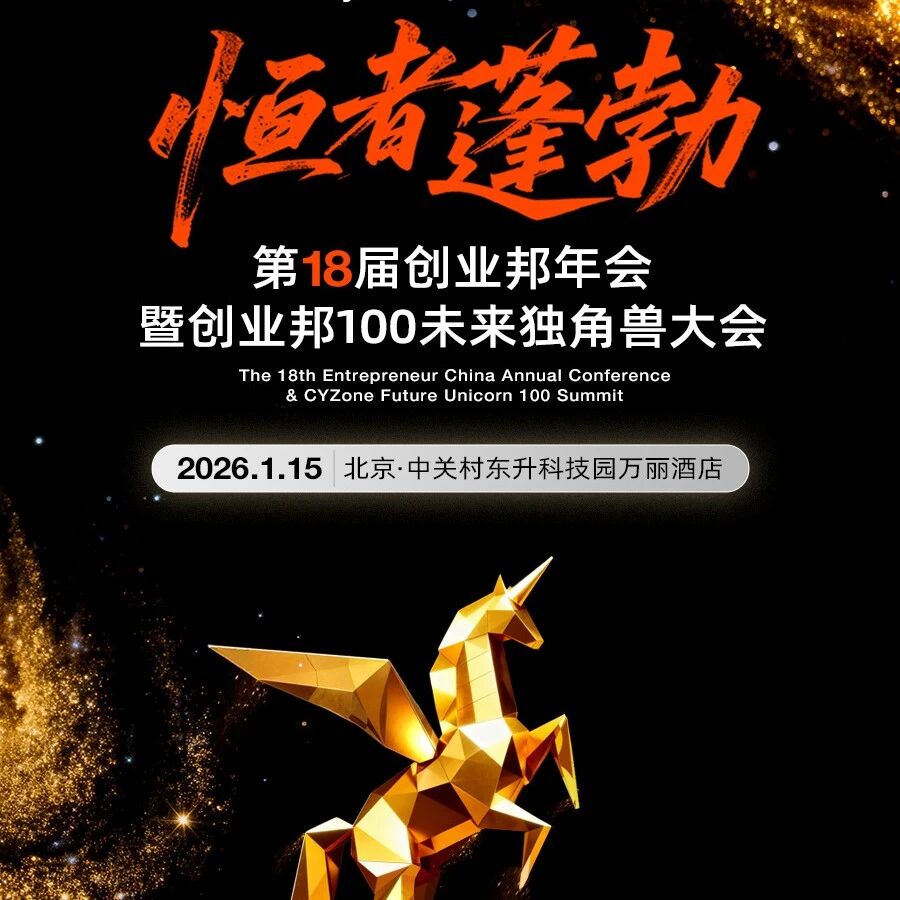 独角兽 未来独角兽 年终必赴的创投派对 亮点剧透 扫描三维码报名参会 LIDE I INI Only the Timeless Thrive 第18届创业邦年会 暨创业邦100未来独角兽大 The 18th Entrepreneur China Annual Conference & CYZone Future Unicorn 100 Summit 2026.1.15 北京·中关村东升科技园万丽酒店 ● Conference Highlights 年度的创方量加冕 「2025年度投资人」 「2025创业邦100未来独角兽」 *年度硬核科技创投领袖登台,新面孔、新势力 ... 用数据锁定2026 《 2025全球独角兽企业观察报告》 *洞见最闪电融资记录、出手最阔绰机构、年度最孤单赛道 ... 年度超值开放麦 具身智能价值交锋 无人车物流革命 重卡的新能源时代 中国Robotaxi出海记 *那些AI创业的belike,那些年少有为的Passion, 那些人生半场再出征的故事 ..... 确认嘉宾 按嘉宾姓氏拼音首字母排序 千亿资本风向标 顶级投资人现场揭秘年度预测 数十家大公司战投部年终相聚 *投资人用真金白银 ...