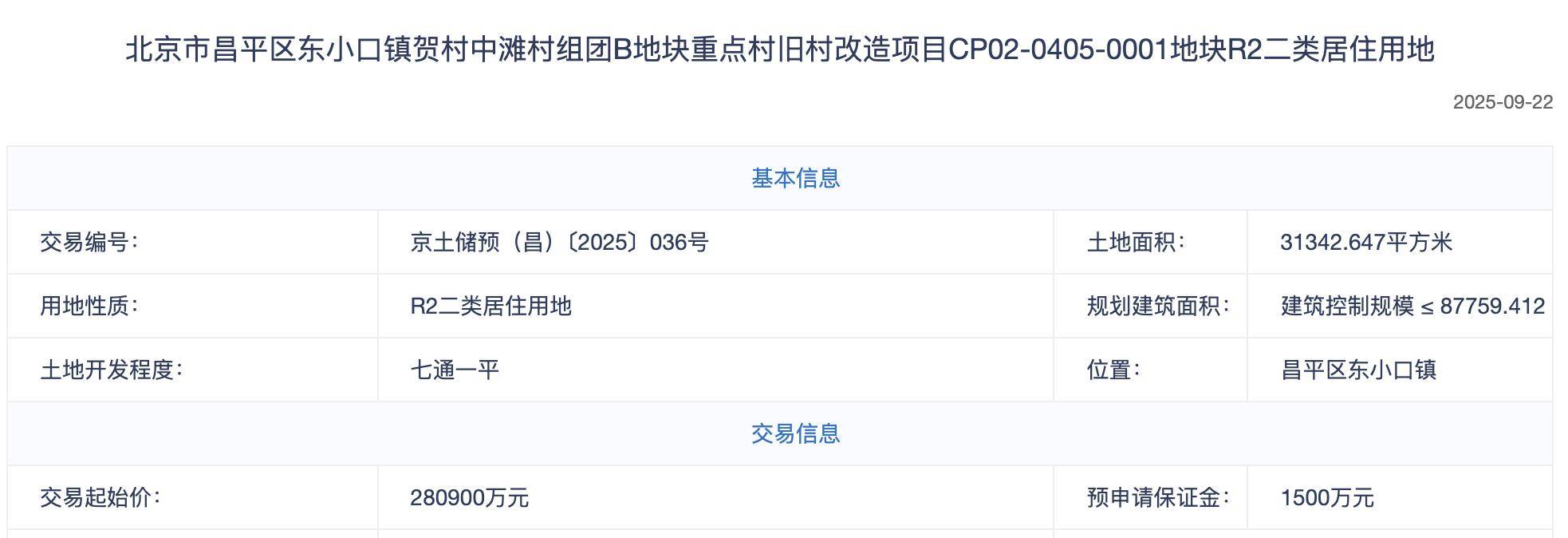 此次突发进入预申请流程,不知是哪家房企又打算在昌平屯粮了。 东小口01地块占地3.13公顷,规划建面8.77万元平米,容积率2.8,限高60米。 地块内需配建社区管理服务用房1处,地上建筑规模500平方米。 北京进深 徐迪 9月22日,昌平东小口镇0405-0001地块"空降"至预申请列表中。 起拍价28.09亿元,折合楼面价3.2万元/㎡。 预申请受理时间自截至2025年10月21日下午17:00。 这块地并不在月初发布的第七轮供地清单中,而在早已下线的第五轮清单上,当时还有另外两宗02、05地块,均未被激活。 东小口地块直线距离北五环3公里,挨着海淀和朝阳,往西能承接西二旗、后厂村的互联网新贵的外溢需求,向东可吃到望京商务区的红利。 在建的地铁13B号线建材城东站距离地块1公里左右,计划明年通车,向西5站直达西二旗;向东3站到望京。 再加上今年6月已开工建设的S7东北环线,减少到国贸CBD的换乘。 周边有西三旗万象汇、东小口城市休闲公园、东小口森林公园、贺新公园等设施,生活配套完善。 规划中的北京101中学也在地块附近,12年一贯制学校,填补区域优质教育资源的缺口。 在昌平,这块地的位置,是能跟朱辛庄叫板 ...