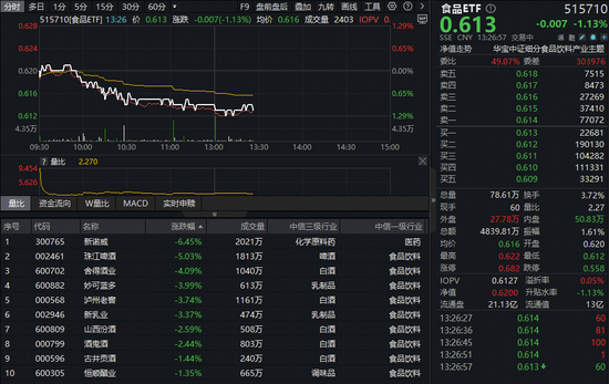 吃喝板块逆市下探,估值跌至十年低位!食品ETF(515710)盘中跌超1%!机构高呼:估值底部配置时机或现