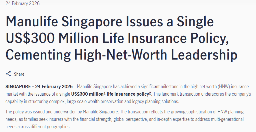 宏利新加坡签发3亿美元“天价保单”,破吉尼斯世界纪录!