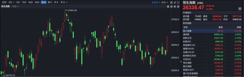 今日(2026年1月2日),港股市场迎来近17年最强开局。 截至收盘,恒生指数大涨707.93点,以26338.47点报收,涨幅2.76%,创下2009年以来最强开局表现。2009年1月2日, 当时恒指单日暴涨4.55%。 此外,恒生科技指数表现更强,截至收盘,恒生科技指数报收于5736.44点,上涨220.46点,涨幅达4%。 摩根士丹利:恒指最高看到34700点 摩根士丹利对港股也较为乐观。根据摩根士丹利发布的策略报告,2026年将是2025年高回报后的稳定之年,指数上涨空 间较为温和,同时将伴随适度的每股盈利增长,估值也将稳定在较高区间。背后支撑因素包括中国在全球科技竞赛中重 新站稳脚跟,以及贸易紧张局势有所缓解。 从行业来看,各类行业全线飘红,半导体、国防军工、软件服务、家电领涨。 | | | Wind香港二级行业指数 | | | | --- | --- | --- | --- | --- | | 半导体 | 国防军工 | 软件服务 | 家电川 | 钢铁川 | | 7.87% | 7.78% | 4.18% | 3.99% | 3.59% | | 可选消费零售 | 有色金属 | 非银金融 | 耐用消费 ...