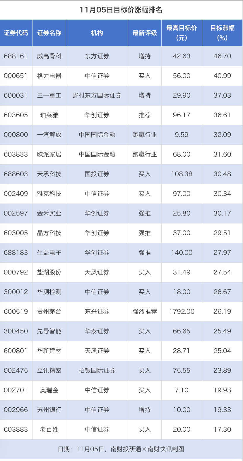 威高骨科、格力电器目标价涨幅超40% 上海沿浦评级被调低|券商评级观察