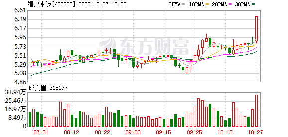 Core Viewpoint - Fujian Cement (600802) experienced a trading surge, hitting the daily limit with a turnover rate of 6.88% and a transaction volume of 195 million yuan, indicating strong market interest [2] Group 1: Trading Activity - The stock was listed on the Shanghai Stock Exchange due to a price deviation of 8.88%, with a net buying amount of 11.6883 million yuan from brokerage seats [2] - The top five brokerage seats accounted for a total transaction volume of 62.4684 million yuan, with a buying amount of 37.0783 million yuan and a selling amount of 25.3901 million yuan [2] - The largest buying brokerage was Zhongtai Securities, with a purchase amount of 14.1519 million yuan, while the largest selling brokerage was J.P. Morgan Securities, with a selling amount of 8.6413 million yuan [2][3] Group 2: Capital Flow - The stock saw a net inflow of 38.3151 million yuan from main funds, with large orders contributing 25.3324 million yuan and big orders contributing 12.9826 million yuan [2] - Over the past five days, the net inflow of main funds totaled 31.2109 million yuan [2] Group 3: Financing and Earnings - As of October 24, the margin trading balance for the stock was 359 million yuan, with a financing balance of 359 million yuan and a securities lending balance of 22.74 million yuan [3] - In the last five days, the financing balance decreased by 5.4854 million yuan, a decline of 1.50%, while the securities lending balance increased by 2.51 million yuan, an increase of 12.41% [3] - The company reported a revenue of 1.113 billion yuan for the first three quarters, a year-on-year decrease of 0.42%, and a net loss of 7.5662 million yuan [3]