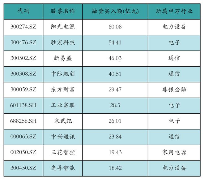 (本文来自第一财经) 在沪指站上4000点之后,两融余额也再创新高,突破2.5万亿。截至10月29日,两融余额达到2.5066万亿 元,占A股流通市值的比例为2.53%,其中融资余额为2.4886万亿元,融券余额为180.70亿元。29日,融 资净买入115.87亿元,净买入较多的行业是电力设备、银行、通信、有色金属、计算机、电子等行业, 非银金融、基础化工、石油石化、商贸零售等行业遭融资净卖出。个股方面,阳光电源、新易盛、工业 富联、隆基绿能、先导智能等股票获融资大笔净买入,而中科曙光、东山精密、长川科技、中芯国际、 宁德时代等股票被融资大笔净卖出。(第一财经记者 黄思瑜) ...