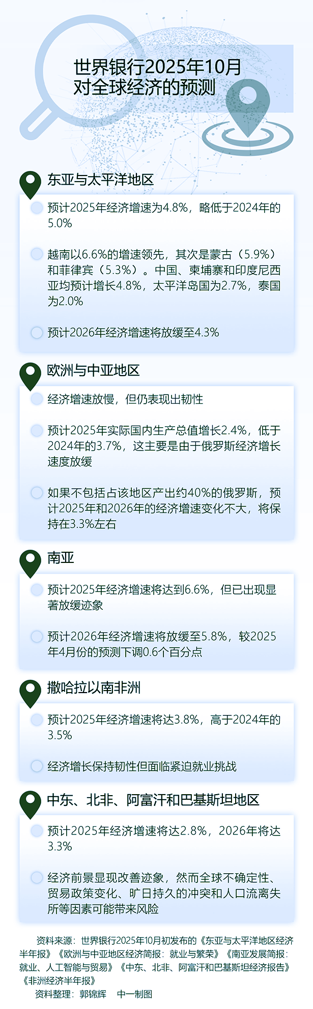 ZHIKUYAOLAN 编者按 发展是人类社会的永恒主题。近期,一些国际机构发布的研究报告显示,随着贸易冲突的加剧、政策不确定性的增加和技术变革的加快,全球经济正在遭 受系统性冲击,进入增长乏力时期。一个由持续冲击和不断加剧的碎片化所塑造的全球经济新格局正在出现。与此同时,国内外智库发布的研究报告显 示,中国式现代化不断向前推进,并持续推动凝聚共促发展的国际共识,加强合作机制建设,加大全球发展合作资源投入,为实现全球可持续发展目标注 入了新动能。 全球经济环境出现新变化 阅读提示:贸易、技术、资源和制度面临的各种冲击表明,全球经济环境出现了新的变化。世界贸易组织近日发布的报告,大幅上调了2025年全球货物贸 易增长预测,但同时大幅下调了2026年全球货物贸易增长预期。联合国贸易和发展会议发布的报告指出,2025年全球海运贸易量预计仅增长0.5%,为近 年来最慢增速。这反映出地缘政治紧张局势、新贸易壁垒和气候变化压力重塑航运路线,推高运输成本。世界经济论坛发布的最新《首席经济学家展望》 预计,2026年全球经济可能会增长乏力。 《全球贸易展望与统计》:2026年全球贸易增长前景不容乐观 世界贸易组织10月7日在 ...