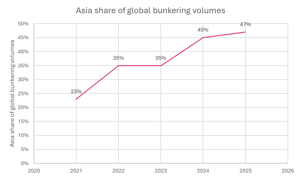 Core Insights - The global LNG bunkering volume has exceeded the record of 2.6 million tons for the entire year of 2024 in the first three quarters of this year, with an expected total of approximately 4 million tons, nearly doubling year-on-year. China is identified as the primary driver of this growth [1]. Group 1: Market Share and Growth - Asia's share of the global LNG bunkering market has increased from 45% in 2024 to 47% in the first three quarters of 2025, with China being the sole contributor to this growth despite Europe having more LNG bunkering vessels and stronger policy incentives [2]. - By 2025, China's LNG bunkering volume is projected to account for 24% of the global total, a significant increase from 16% last year, making it the largest single LNG fuel consumption market globally [4]. Group 2: Supply and Pricing Dynamics - The rapid rise of China's LNG bunkering market is closely linked to a structural surplus in its domestic natural gas market, with increased pipeline gas imports and domestic production leading to a short-term supply surplus [7]. - Long-term contracts are generally linked to Henry Hub or crude oil prices, with average prices over the past 12 months being approximately $3.5 lower per million British thermal units (MMBtu) than the JKM price. This pricing advantage allows major energy companies like PetroChina to resell LNG at a slight premium, creating a competitive cost structure for LNG bunkering in China [8]. Group 3: Demand Trends - As of early October this year, there are 788 LNG dual-fuel capable vessels in operation globally, with an additional 631 under construction, indicating a growing nominal demand for LNG as a fuel [11]. - The actual demand for LNG as a marine fuel was only 43% of nominal demand in 2024, but this ratio increased to 50% in the first three quarters of 2025, suggesting a rising preference among shipowners for LNG despite weakening fuel competitiveness [11]. - Analysts expect that with new LNG production capacities coming online globally, LNG prices may decrease, enhancing its economic viability, while traditional fuels face higher punitive costs related to carbon and sulfur emissions [11].