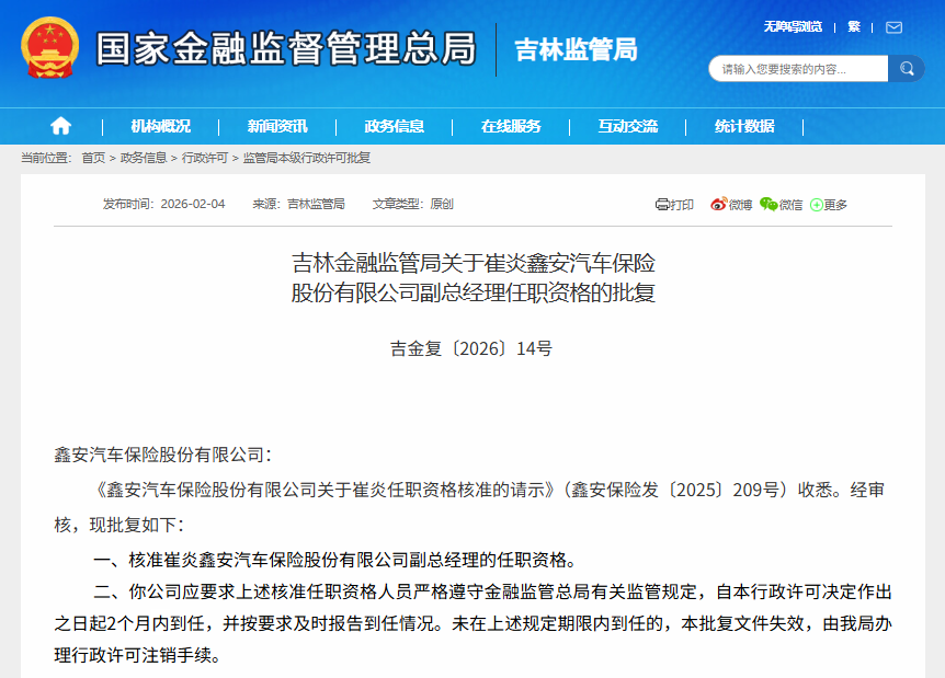 2月4日,据吉林金融监管局网站,崔炎获批出任鑫安汽车保险副总经理。 公开资料显示,崔炎,1977年3月出生,曾任融盛财险副总经理、临时负责人兼副总经理、执行董事兼副总经理,鑫安汽 车保险储备干部等职。 关键词阅读:鑫安汽车保险 融盛财险 崔炎 责任编辑:栎树 ...