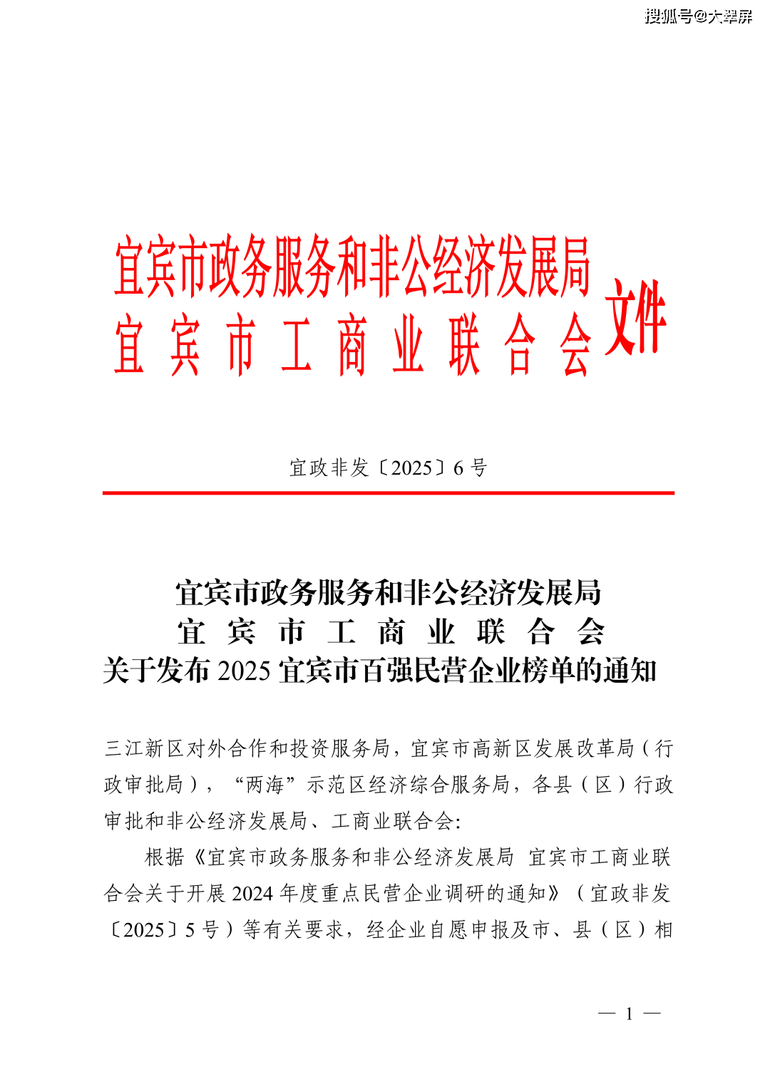 近日,宜宾市政务服务和非公经济发展局、宜宾市工商业联合会联合发布《关于发布2025直宾市百强民营企业榜单的通知》,正式公布2025年度宜宾市民 营企业百强榜单。 亿胜集团凭借其卓越的综合实力与良好的公众口碑,再度强势登榜,位列百强企业前列,实现连续多年蝉联上榜,充分彰显了其行业 领军者的风范。 亿胜集团作多年来始终秉持"诚信立业,稳健发展"的经营理念,在工程建设领域深耕细作。集团以精湛的技术实力、严谨的管理体系和优质的施工质量, 赢得了业界和社会的广泛认可,打造了一批精品工程和标杆项目。 亿胜集团始终坚持"做一个负责任的企业"精神,不断提升核心竞争力,积极参与宜宾城市建设和经济社会发展。此次上榜不仅是荣誉,更是责任。集团将 以此为契机,继续发扬工匠精神,打造更多优质工程,在未来的发展中再创佳绩! 樓抓 号@大學屏 宜宾市政务服务和非公经济发展局 工 商 业 联 合 会 文件 宜政非发〔2025〕6号 宜宾市政务服务和非公经济发展局 宜 宾 市 工 商 业 联 合 会 关于发布 2025 宜宾市百强民营企业榜单的通知 三江新区对外合作和投资服务局,宜宾市高新区发展改革局(行 政审批局),"两海"示范区经济综合服 ...