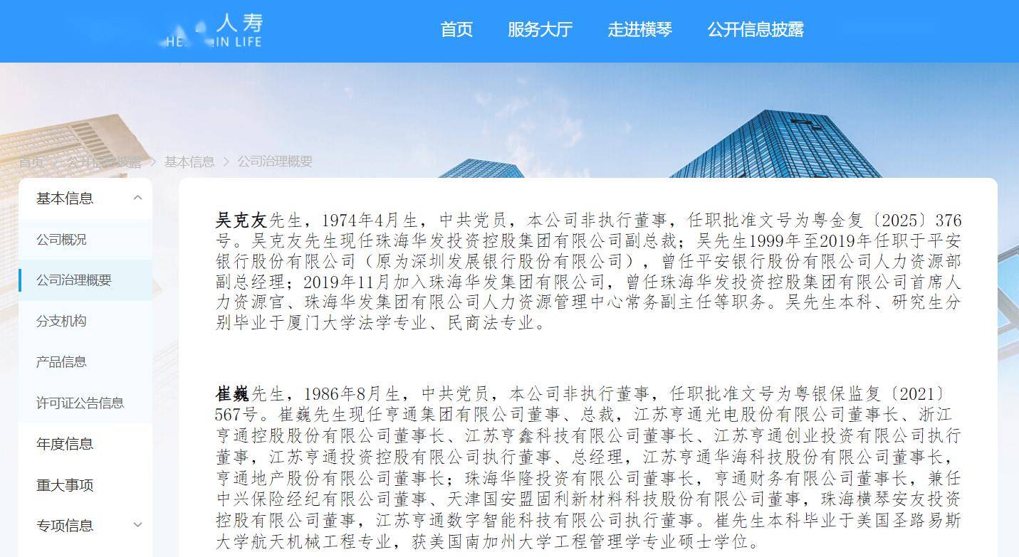 公开信息显示,燕文波,出生于1974年,2021年12月起任华金证券党委书记、总裁。其于1996年入职原君安证券,后出任上海浦东科创有限公司投资部经 理、原民生证券人力资源部总经理、原联合证券机构客户部总经理。2006年加入国海证券,2011年8月至2021年10月任副总裁,分管投行业务并兼任国海富 兰克林基金董事等职。 钱仲华,1962年7月生,2024年7月起任横琴人寿执行董事、董事长。其于1981年7月起先后从事财政局、纪检委等公务工作,曾任太保寿险副总经理、总经 理、党委副书记,太保集团总审计师、审计负责人,审计中心党委书记等职。 2月11日,横琴人寿官网董事简历更新,已无钱仲华 据券商中国,华金证券党委书记、总裁燕文波拟调任横琴人寿,接任董事长,原董事长钱仲华据称于1月22日在董事会上请辞并获得批准。 ...