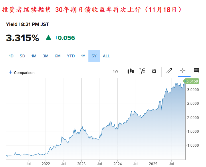 转自:新华财经 新华财经北京11月18日电 由于担心日本首相高市早苗不断膨胀的支出计划,长期日债连续第二日遭投 资者抛售,与此同时,日经指数周二(18日)大幅下跌,这是三周以来首次跌破5万大关。该指数收盘 于48,702点,比周一收盘时下跌了3%以上。而在日本股市下跌之前,投资者对美联储下月降息的预期 降低,隔夜纽约股市出现了更广泛的抛售。 当天盘中及盘后交易,中短债日债收益率下行,长期日债收益率上行,截至发稿时,2年期日债收益率 跌1BP至0.925%,10年期日债收益率涨2.1BPs至1.75%,20年期日债收益率涨4.6BPs至2.791%,30年期 日债收益率涨5.6BPs至3.315%。 "通常情况下,当这些避险事件发生时,都是由美联储发起的,并因对日本的担忧而延续,"法国兴业银 行首席美国股市和多资产策略师马尼什·卡布拉表示。 市场参与者还预计,日本央行12月召开的政策会议将不会加息。 日本央行行长植田和男周二表示,他告诉首相,央行正在逐步提高利率,以引导通胀平稳地向2%的目 标迈进,这番言论让市场继续猜测加息的时机。 分析人士表示,投资者迫切希望了解高市经济措施的规模,以及她计划如何为这些措施提 ...
