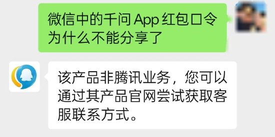 腾讯客服回应“千问口令已无法在微信复制分享”:产品非腾讯业务,可通过官网尝试获取客服