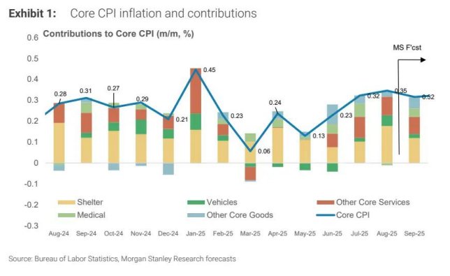 大摩:美国9月CPI预计再走高 关税传导持续推高核心通胀