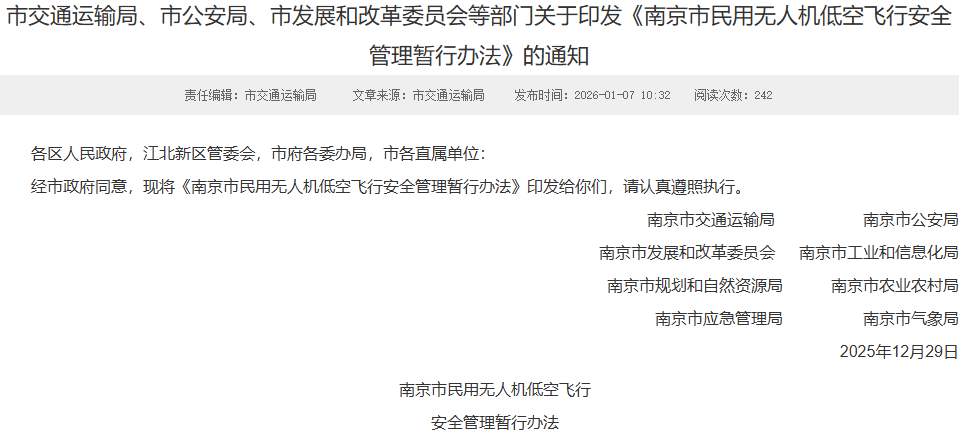 南京民用无人机“空中交规”2月1日起实施,公安机关对违反飞行管理规定行为可依法查处