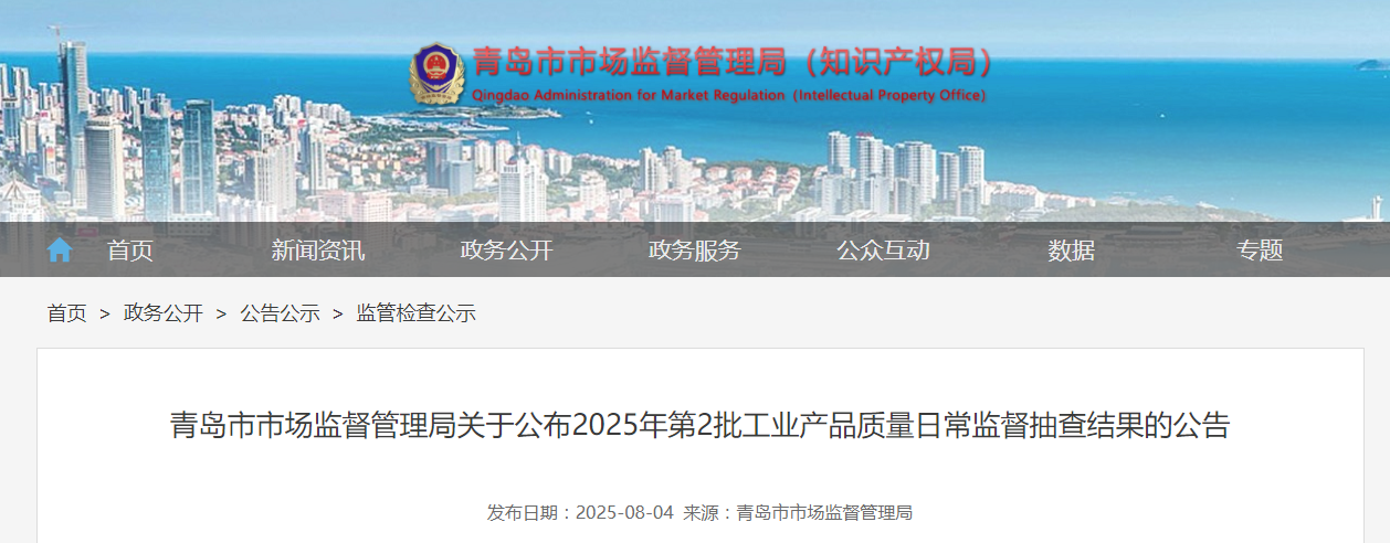 中国质量新闻网讯 近日,青岛市市场监督管理局网站公布2025年第2批工业产品质量日常监督抽查结果。其中,电动自行车产品抽查25批次,全部合格。 | 附件 | 2025年电动自行车产品质量市级监督抽查结果汇总表 | | | | | | | | | | | | | | | | | | | | | | | --- | --- | --- | --- | --- | --- | --- | --- | --- | --- | --- | --- | --- | --- | --- | --- | --- | --- | --- | --- | --- | --- | --- | | 生产日 | 不合 | 序 | 抽样 | 产品 | 商 | 抽查结 | 抽样 | 行政 | 受检单位名称 | 统一社会信用代码 | 标称生产者名称 | 期或批 | 规格型号 | 格项 | 承检单位 | 号 | 领域 | 名称 | 标 | 果 | 日期 | 区划 | | 号 | 目 | 斯 | | | | | | | | | | | | | | | | | | | | | | 电动 | 所检项 | 青岛市产品 | 2024- | 1 流通 | ...