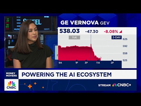 Welcome back. Watching shares of GE Vernova this morning reporting a revenue beat as it remains on the forefront of helping to power the data center boom. Simma Modi just speaking with the CEO joins us here at Post9.What did he say. >> Well, the bar was set high going into this report. Sarah and Carl with a stock up over 90% in the last year.Uh the third quarter earnings speed just simply wasn't enough I guess right now for Wall Street. Giver Vernova certainly has become the go-to power player for hyperscal ...