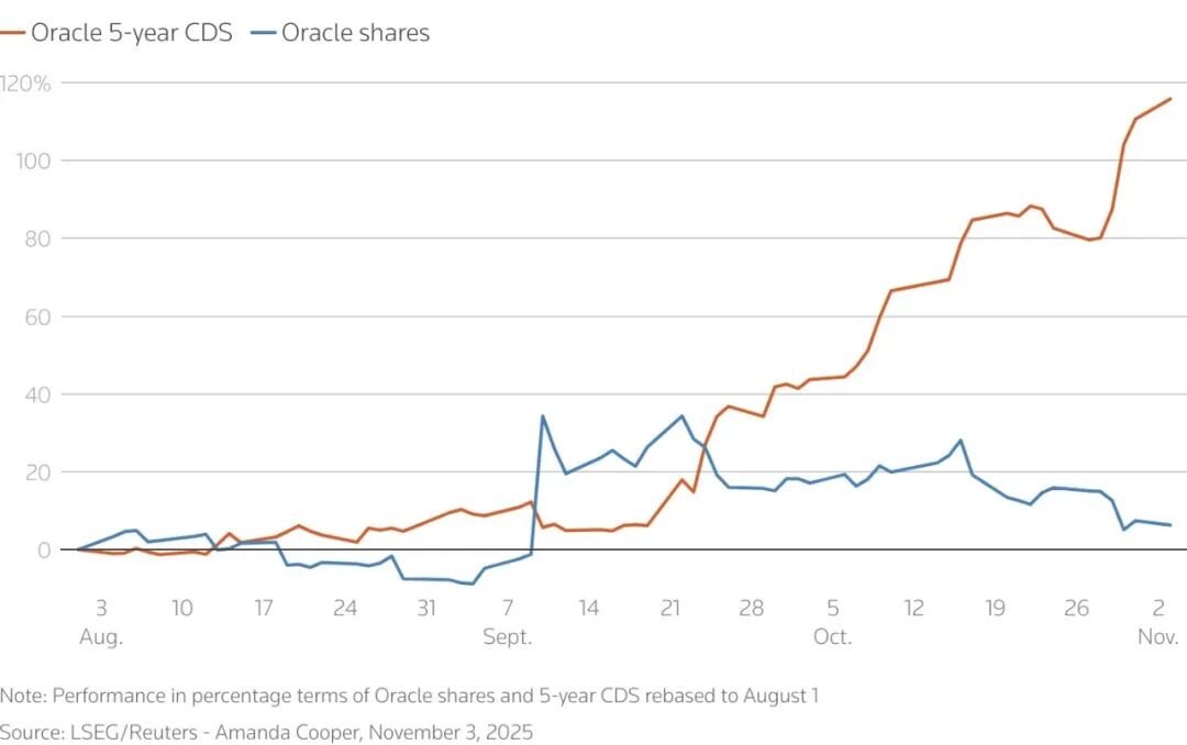 Group 1 - Meta plans to invest $600 billion in the U.S. by 2028 for AI data centers and talent recruitment [1] - Meta recently completed a $30 billion financing through a Special Purpose Vehicle (SPV) for data center construction [1] - Alphabet is set to issue an additional €3 billion in bonds this year after a previous €6.75 billion issuance [1] Group 2 - Oracle's Credit Default Swaps (CDS) surged in September, indicating market concerns over its high debt levels related to AI infrastructure investments [2][5] - The total financing for tech companies in the U.S. reached $157 billion by the end of September, a 70% increase year-over-year [2] - Oracle signed a $300 billion computing power procurement contract with OpenAI, boosting its stock price significantly [2][9] Group 3 - Oracle's debt-to-equity ratio is significantly higher than other AI giants, with a debt ratio of approximately 85% [6][9] - Despite Oracle's high leverage, many leading AI companies are still showing strong profit growth, with Alphabet's Q3 revenue at $102.35 billion, a 16% year-over-year increase [9][10] - The current capital investments in AI, while substantial, remain within a reasonable range compared to historical bubbles [10] Group 4 - The U.S. tech companies are expected to invest nearly $700 billion in data center construction by 2027, contrasting with Chinese companies' projected investment of under $80 billion [12] - Meta's SPV financing structure allows it to isolate $30 billion in debt from its balance sheet, improving its financial appearance [16] - The use of SPVs by tech companies is a strategy to manage debt pressure and attract diverse investors [16][17] Group 5 - Indicators for identifying an "AI bubble" include the proportion of new funding from loans and the sustainability of stock price growth [18][19] - Current debt levels in AI companies are lower than during the internet bubble, suggesting a safer debt structure [19] - The market's ability to adjust quickly due to modern trading systems may lead to shorter correction periods compared to past bubbles [20]