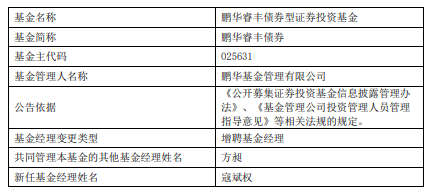 鹏华睿丰债券增聘寇斌权