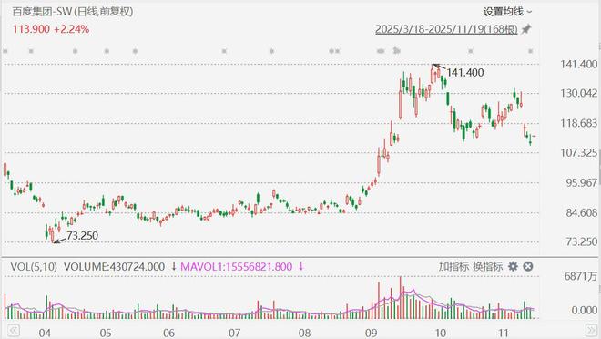 百度集团-SW绩后高开逾3% 三季度总营收312亿元