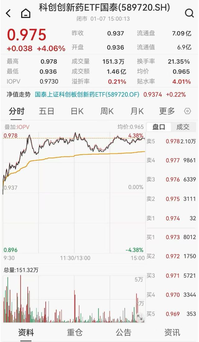 创新药板块表现亮眼。科创创新药ETF(589720)大涨4.06%,创新药ETF国泰(517110)涨2.80%。 创新药板块经历回调后性价比显现,伴随着海外龙头已上市小核酸药物展现出较大商业化潜力,海内外 小核酸在研管线数据的密集发布,小核酸技术路径逐渐走向成熟。本周瑞博生物即将登陆港股市场,有 望进一步催化市场情绪。 展望后市,预计GLP-1更多适应症突破、小核酸药物、ADC多点突破值得期待;短期可关注与脑机接 口、小核酸等主题共振机会;产业层面:1月中旬JPM会议、5月ASCO年会等关键会议或密集披露临床 数据,业绩期商业化公司表现值得期待。若持续有高质量数据读出催化,可能驱动资金回流。可以关注 聚焦科创板创新药企业,覆盖生物制药、化学制药等领域,代表创新药产业基本面景气度的科创创新药 ETF(589720)和聚焦于沪港深三地市场中从事化学、生物创新药研发及相关产业链服务的创新药ETF 国泰(517110)。 风险提示: 来源:WIND 消息面上,Arrowhead Pharmaceuticals于2026年1月6日公布了其两款基于RNAi技术的减重药物(ARO- INHBE和ARO-ALK7)的1/2 ...