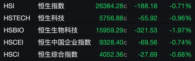 电气设备、医药生物、有色金属、化工、银行板块表现低迷,软件服务、大消费、煤炭、房地产板块走 强。 11月17日,港股恒生指数收跌0.71%,恒生科技指数跌0.96%。 | HSI | 恒生指数 | 26384.28c -188.18 | | -0.71% | | --- | --- | --- | --- | --- | | HSTECH 恒生科技 | | 5756.88c | -55.92 | -0.96% | | HSBIO | 恒生生物科技 | 15959.29c -321.53 | | -1.97% | | HSCEI | 恒生中国企业指数 | 9328.40c | -69.56 | -0.74% | | HSCI | 恒生综合指数 | 4052.36c | -27.69 | -0.68% | | 2015.HK | 1 J.4UU | - L. JL/C | | --- | --- | --- | | 哔哩哔哩-W | 205.000 | -1.91% | | 9626.HK | | | | 比亚迪电子 | 34.000 | -1.79% | | 0285.HK | | | | 同程旅行 | 22. ...