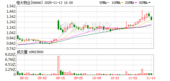 恒大物业(06666.HK)盘中跌超3%