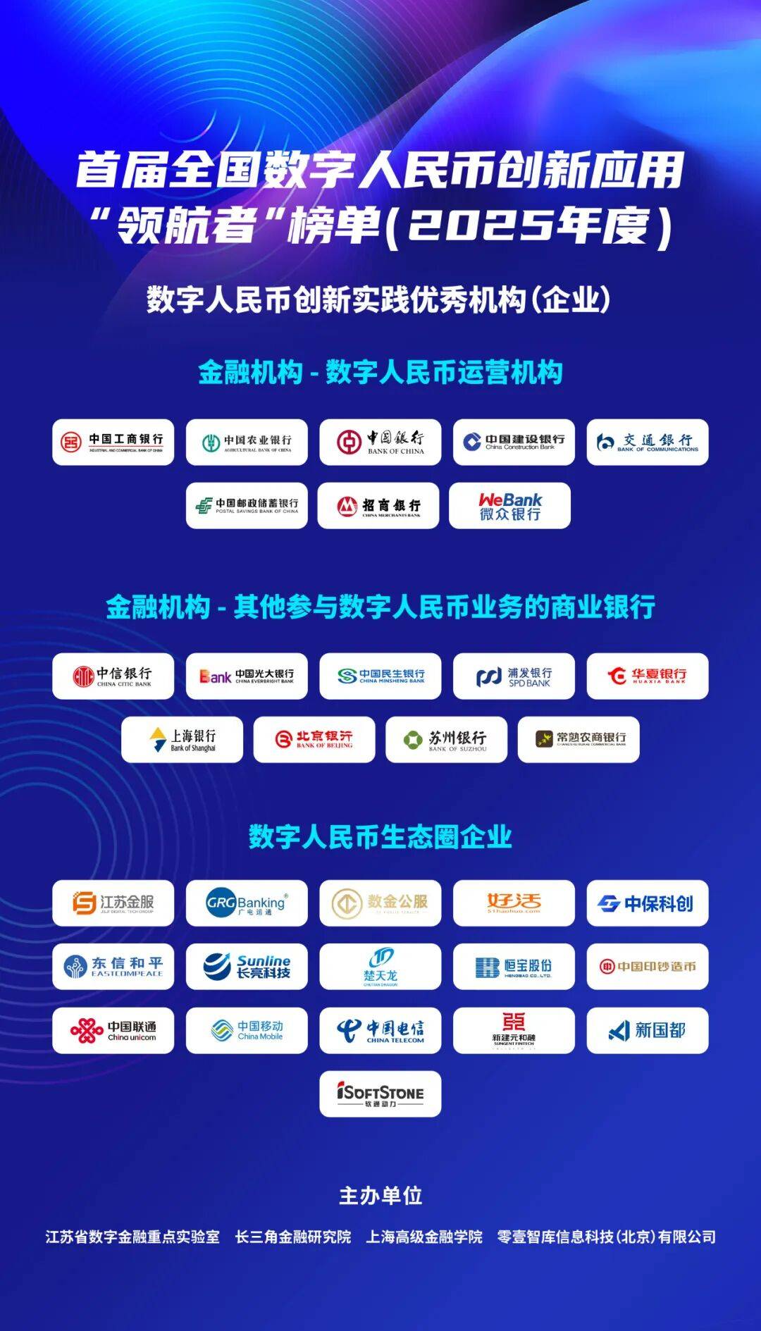 首届全国数字人民币创新应用“领航者”榜单(2025年度)揭晓!