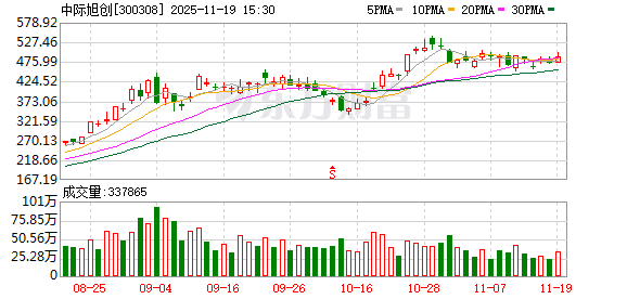 两融数据显示,该股最新融资余额为176.91亿元,近5日增加3.06亿元,增幅为1.76%。 | 成交量 | 成交金额 | 成交价格 | 相对当日收盘折 | 买方营 | 卖方营业部 | | --- | --- | --- | --- | --- | --- | | (万股) | (万元) | (元) | 溢价(%) | 业部 | | | 7.00 | 3310.37 | 472.91 | -3.21 | 机构专 | 国泰海通证券股份有限公司上海嘉定 | | | | | | 用 | 区洪德路证券营业部 | 进一步统计,近3个月内该股累计发生22笔大宗交易,合计成交金额为5.37亿元。 证券时报·数据宝统计显示,中际旭创今日收盘价为488.60元,上涨3.32%,日换手率为3.06%,成交额 为165.43亿元,全天主力资金净流入5.38亿元,近5日该股累计下跌0.64%,近5日资金合计净流入4.91亿 元。 据天眼查APP显示,中际旭创股份有限公司成立于2005年06月27日,注册资本111111.8334万人民币。 (数据宝) 11月19日中际旭创大宗交易一览 中际旭创11月19日大宗交易平台出现一笔成交,成 ...
