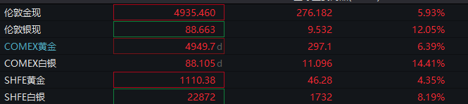 多家交易所密集调整多个品种期货相关合约涨跌停板幅度和交易保证金比例。 2026年2月3日(星期二)自收盘清算时起,Ag(T+D)合约的保证金水平从26%调整为23%,下一交易日 起涨跌幅度限制从25%调整为22%。 2月3日,国际金银价格迎来大幅反弹。截至发稿,现货黄金涨近6%,站上4930美元/盎司,现货白银涨 超12%,站上88美元/盎司。 | 伦敦全现 | 4935.460 | 276.182 | 5.93% | | --- | --- | --- | --- | | 伦敦银现 | 88.663 | 9.532 | 12.05% | | COMEX黄金 | 4949.7 d | 297.1 | 6.39% | | COMEX白银 | 88.105 d | 11.096 | 14.41% | | SHFE黄金 | 1110.38 | 46.28 | 4.35% | | SHFE自银 | 22872 | 1732 | 8.19% | 国内市场方面,3日夜盘,上期所沪银主力合约涨超8%,沪金主力合约涨超4%;上海黄金交易所SGE 黄金T+D涨超3%,SGE白银T+D涨超7%。 | 名称 | 现价 | 涨跌 | ...