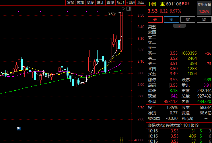 10月27 日, A 股三大指数集体高开。 盘面上,通信设备、半导体、CPO概念、元器件、电气设备等板块涨幅居前;煤炭、银行、石油、酒店餐饮等板块 跌幅居前。 盘中,中字头异动走强,中国一重封板,中国西电涨停,中国核建涨超6%,中国中冶、中国船舶快速上攻。 | 复权 叠加 多股 统计 圓线 标记 +自选 返回 | 湘财股份 600095 R500 | | | 训学 | | --- | --- | --- | --- | --- | | ~14.57 | 13.60 1.17 9.41% | | | 1.69% | | | ਕੇ बै 14.00 | | 撤 | 部 | | | | 13.63 | વેરું રાજ | | | | | 13.62 | 1033 | | | | 13.00 13.61 | | 445 | | | | | 13.60 | 151 | -2956 | | | 13.59 | | 10 | -84 | | | 12.00 起觀至起是與要要到死 | 13.58 | 418 | -54 | | | 13.57 13.56 | | 0 0 8 | | | | 11.00 | 13.55 | ...