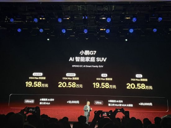 小鹏G7超级增程价格:1704 Max科技版19.58万 1704 Max旗舰版20.58万