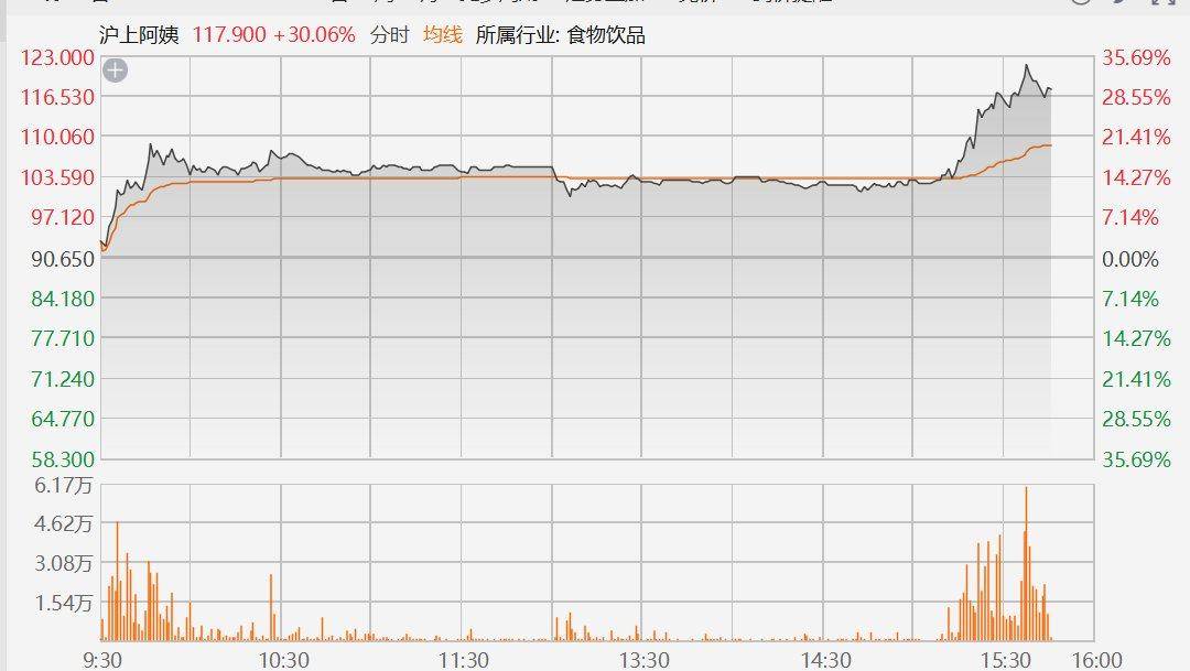 港股新消费概念沪上阿姨尾盘进一步拉升,最高涨超35%,报123港元!成交额放大至超2亿港元